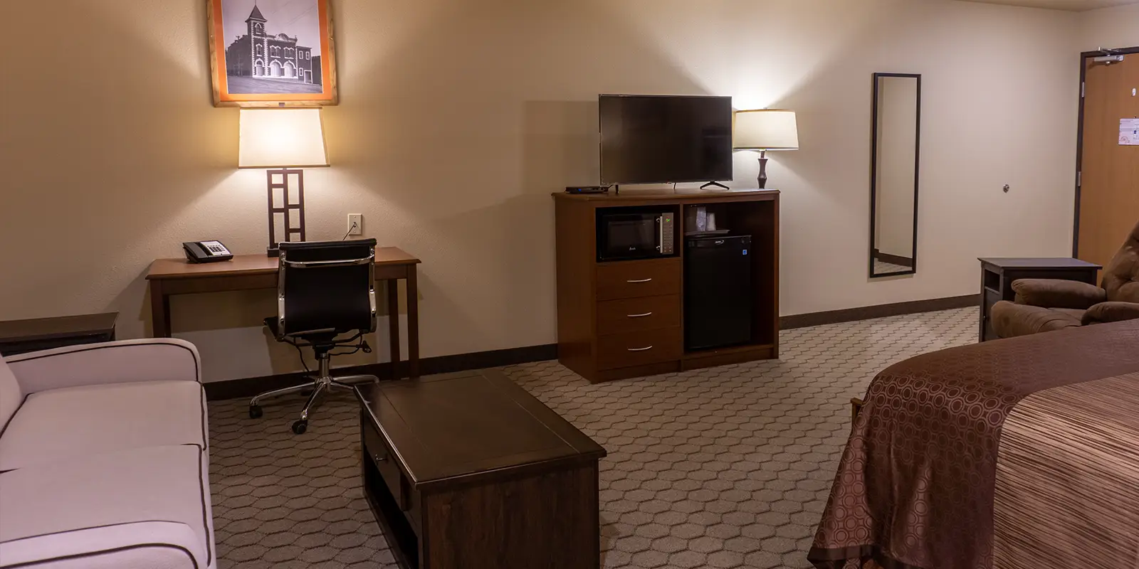 Each room is equipped with Wi-Fi, cable, a shower, and a mini fridge. Did we mention that we have poolside rooms?